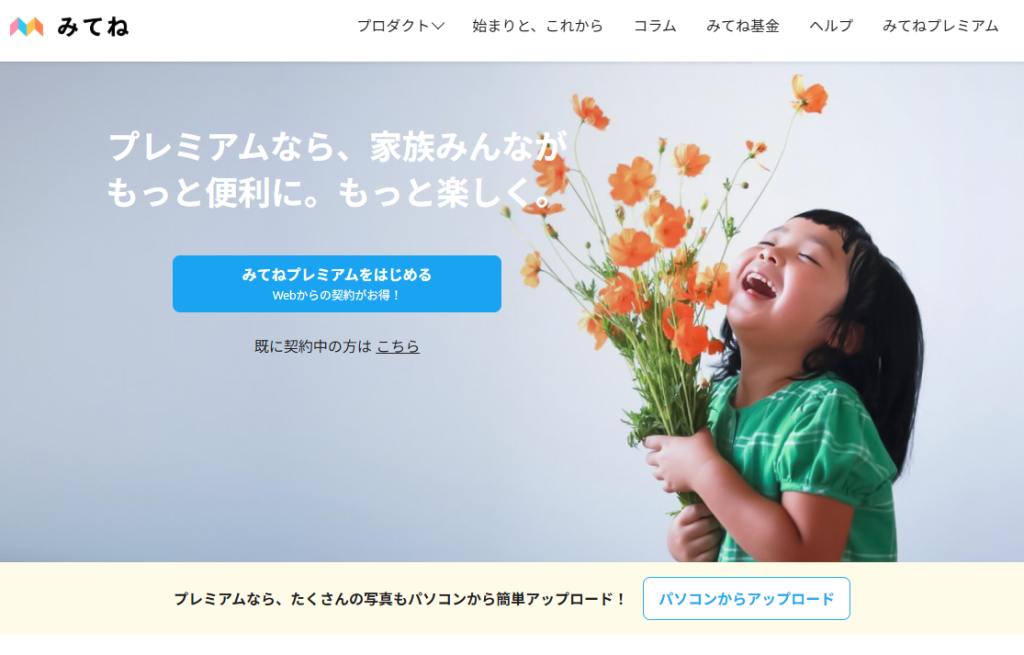 公式サイトの「みてねプレミアムをはじめる」から登録・決済を行うだけです。